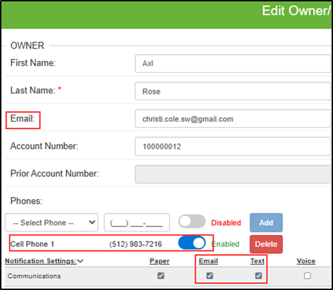 - Select appropriate communication checkboxes