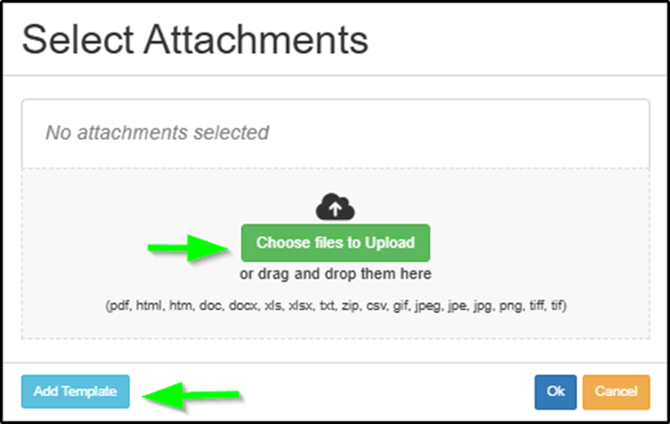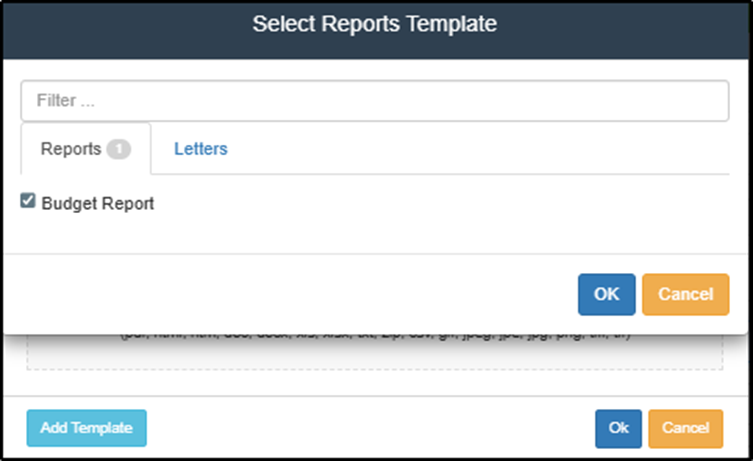 - Add Template (attach report or letter)