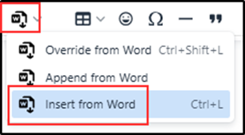 - Click “Insert from Word”