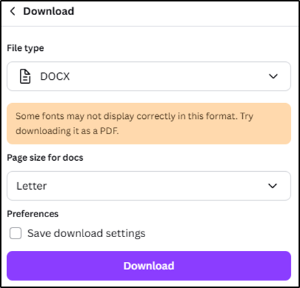 3.5 Exporting a Word Doc from Canva
