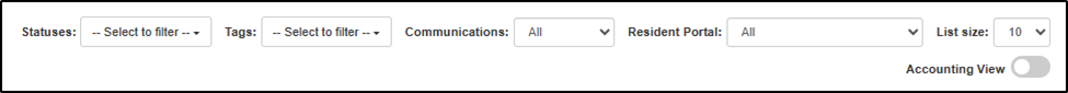 Use filters at top of homeowner grid: - Legal Status - Tags - Notification Type - Portal Usage