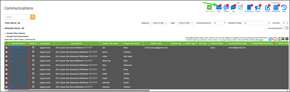 The number in the red bubble indicates how many of those selected will be sent. If you select 50 units and only 10 have emails on file, only 10 will be sent.