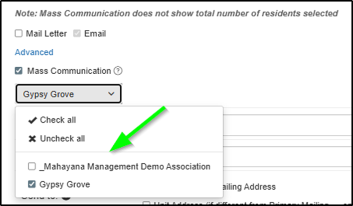 Option 2: 1. Select Email first 2. Click “It’s a Mass Communication” 3. Select association(s)