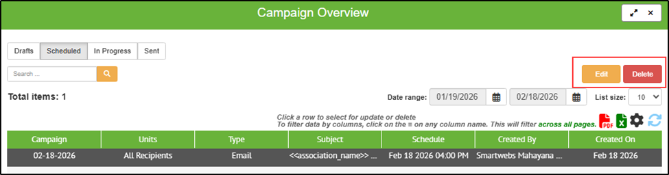Scheduled messages appear in Scheduled Campaigns.