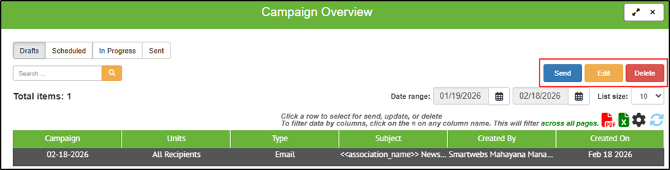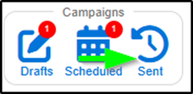 Access drafts via Drafts icon in Campaigns section.