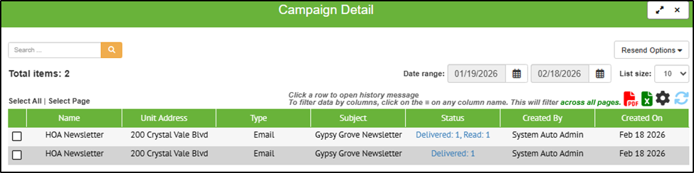 6.1 Bulk Campaign History