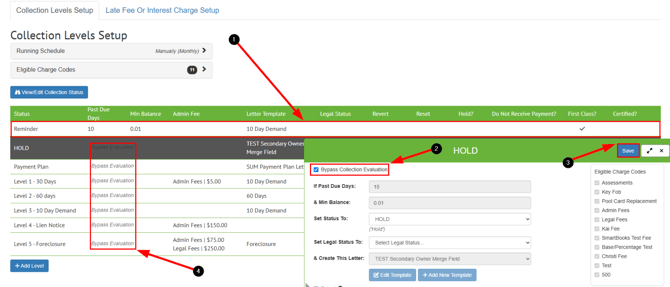 - Any other collection Status/Level you will need to select the row and check the box labeled "Bypass Collection Evaluation"