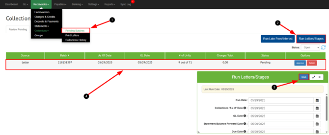 - Once finished, navigate to Accounting > Receivables > Collections > Pending Batches.