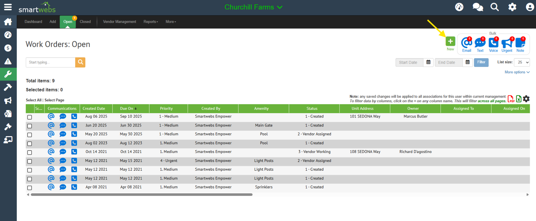 - Due Date: Defaults based on association settings (editable in management settings). Click the calendar icon to choose a new date.