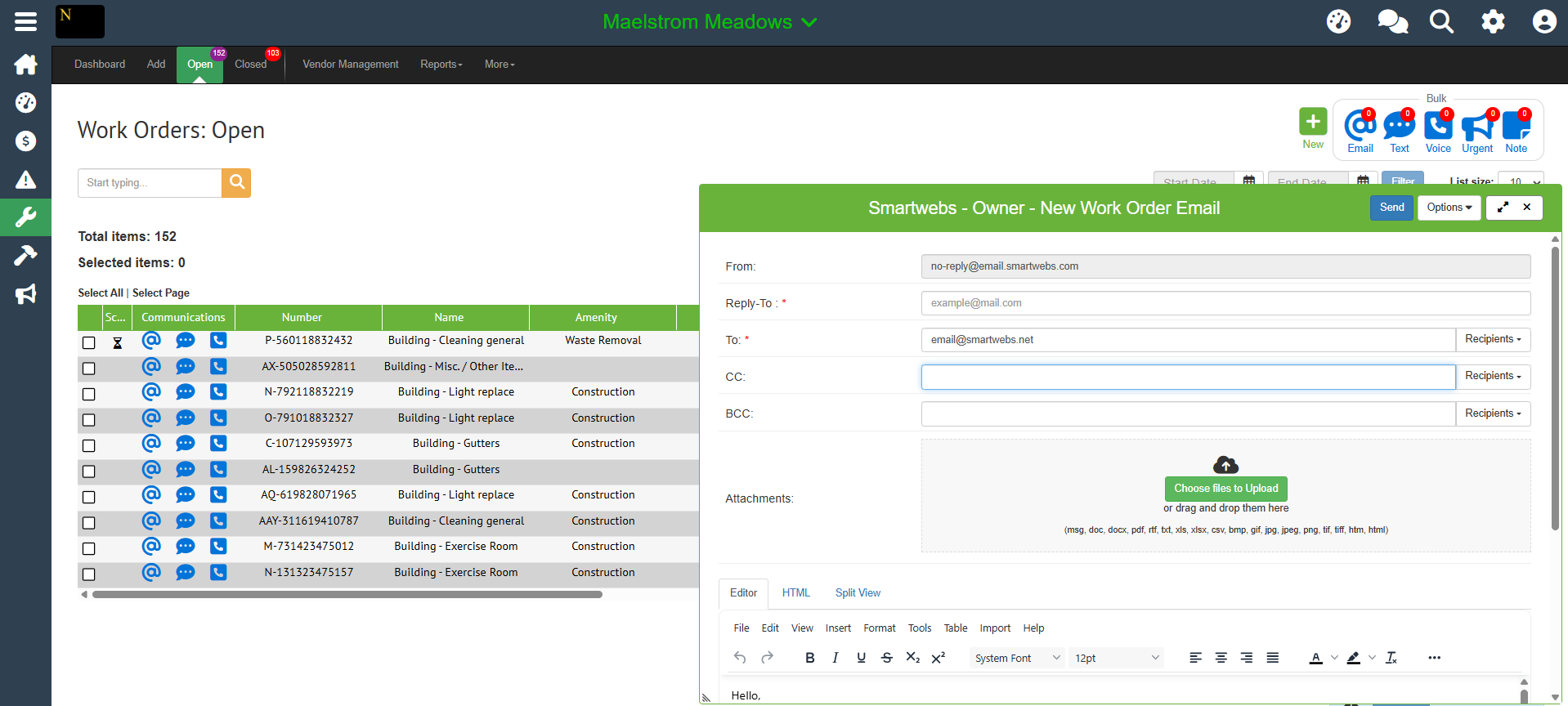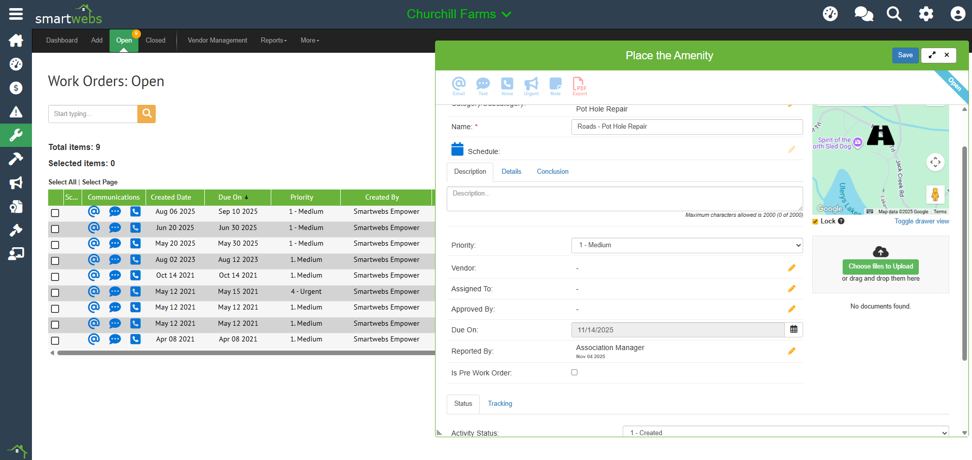 - Documents: Upload pictures, emails, or PDFs associated with the work order here.