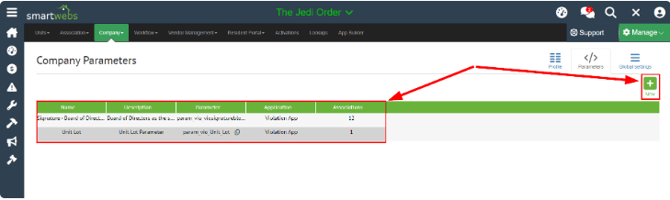 Once in the Custom Parameter Section you will see a list of all custom parameters that have already been created, and you will have the option to create a new custom parameter by selecting the green "New" button on the right of the screen.