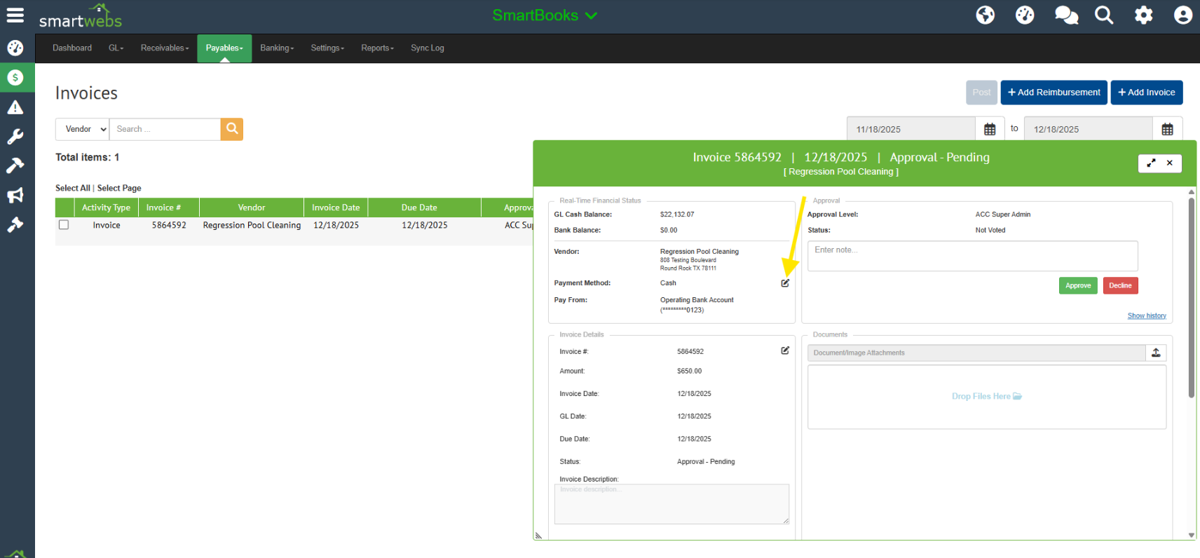 Yes. You are able to update the payment method on any invoice as long as it has not yet been paid. Once a payment has been processed, the method can no longer be modified for that specific transaction.