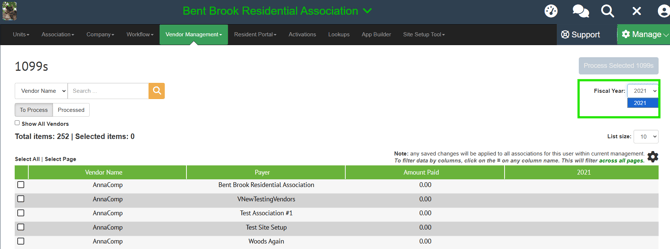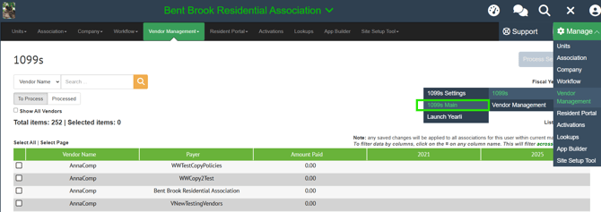 a. Navigate to Manage > Vendor Management > 1099’s Settings