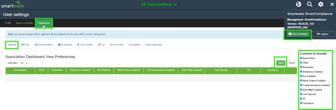 Profile Icon → User Settings → Preferences - Select the General tab and Save the Columns to Include in your default view