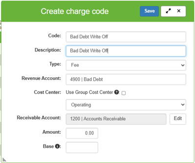 Choose the "Bad Debt Write Off" charge code.