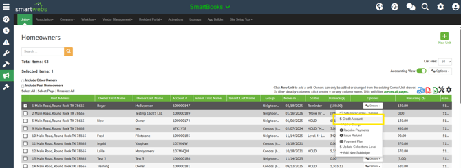 Navigate to Receivables > Search and select the specific homeowner