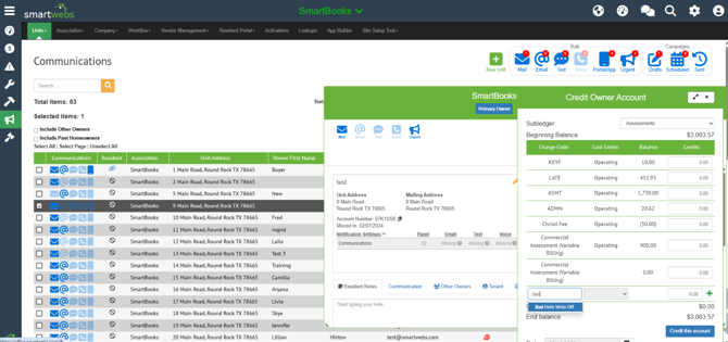 The most effective way to handle bad debt is to issue a Direct Credit against the owner's ledger. This offsets the outstanding balance without deleting the history of the original charges.