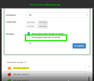 Learn how to display ARC projects older than 12 months in Smartwebs mobile applications.