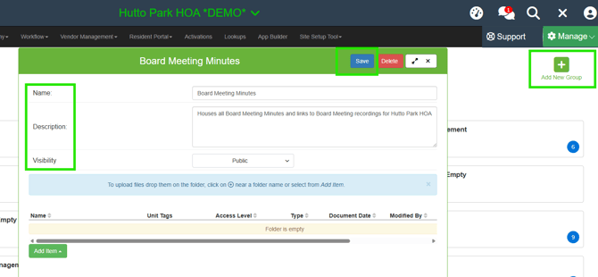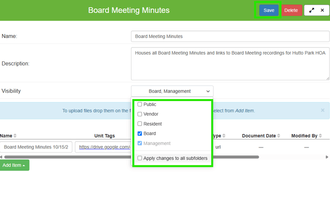5. You can also set Visibility to be only access to Board Members (and/or any other applicable user group such as Management, Residents, etc.):
