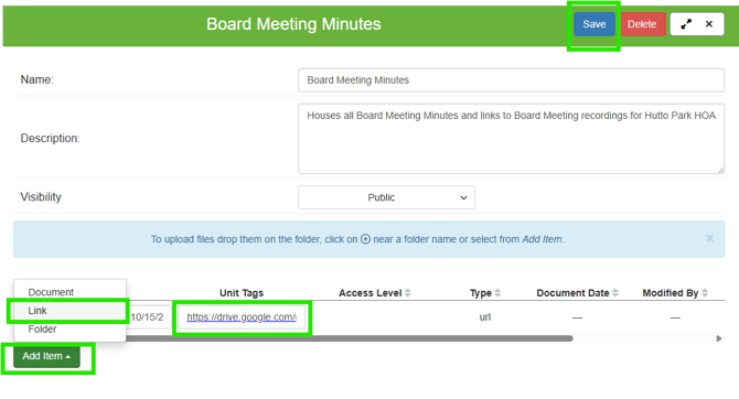 This article outlines how to upload and house Board Meeting Minutes, links to meeting recordings, and other relevant documents per Association and User group.