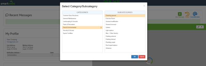 - If Common Area is selected, the resident must then choose the specific amenity and click Ok.