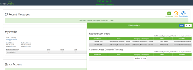 Residents can see any work orders in the portal that are being tracked by their unit or that they have submitted.