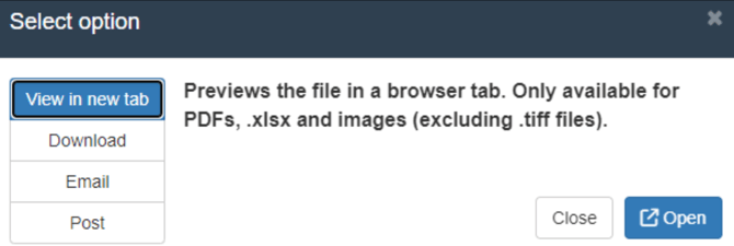 - There will be a Pop-Up giving you options. For this example we will use the "View in a new tab" option.