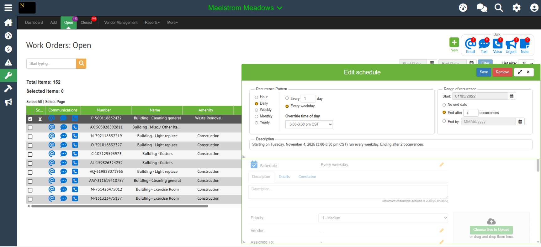 - Define the schedule: When creating or editing a work order, choose how often you want it to happen