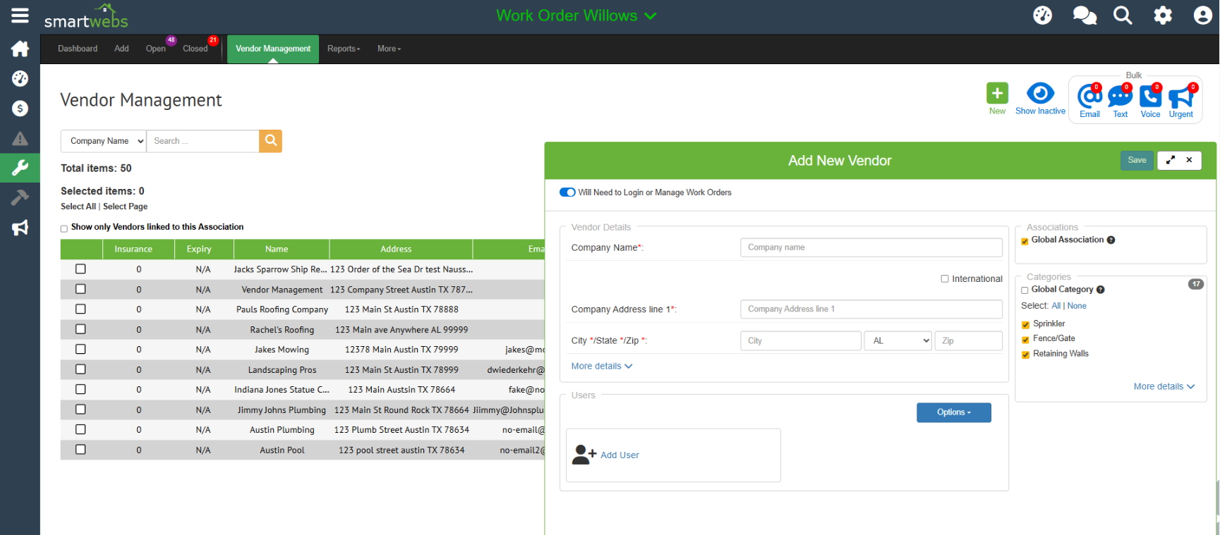 - Once all required fields are complete and the vendor is assigned to an association, click "Save" in the top right corner.