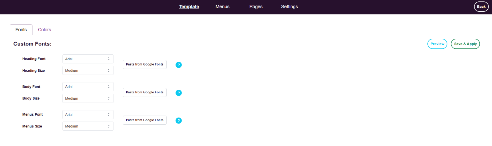 - Navigate to Template > Fonts.