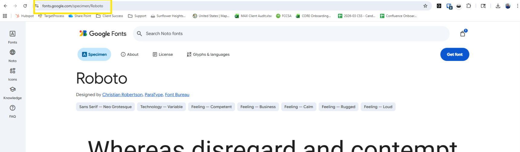 - Select: Find your desired font and click on it to open the specimen page.