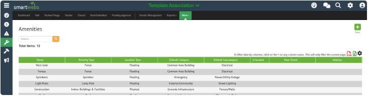 - Name: These should be specific names when possible (Hogan Street Playground, Sweetwater Clubhouse, etc) and also amenities such as landscaping, sprinklers, etc.