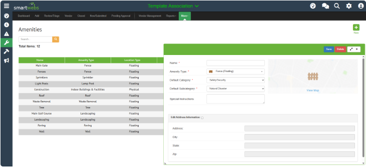 - Address/Map: If the amenity type says Physical, an address is required along with mapping of the amenity.